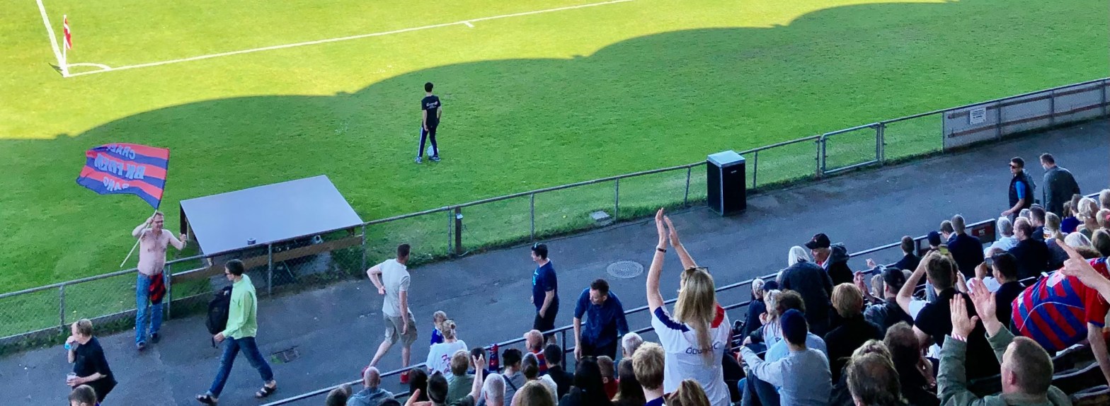 Jeg nåede lige akkurat at skimte en skakternet fane på Ålekistevej, inden jeg drejede om hjørnet, ned mod stadion. Det varede heller ikke mange solsammenknebne øjeblikke, fra jeg havde parkeret min cykel, før jeg også fik øre på begivenhederne.